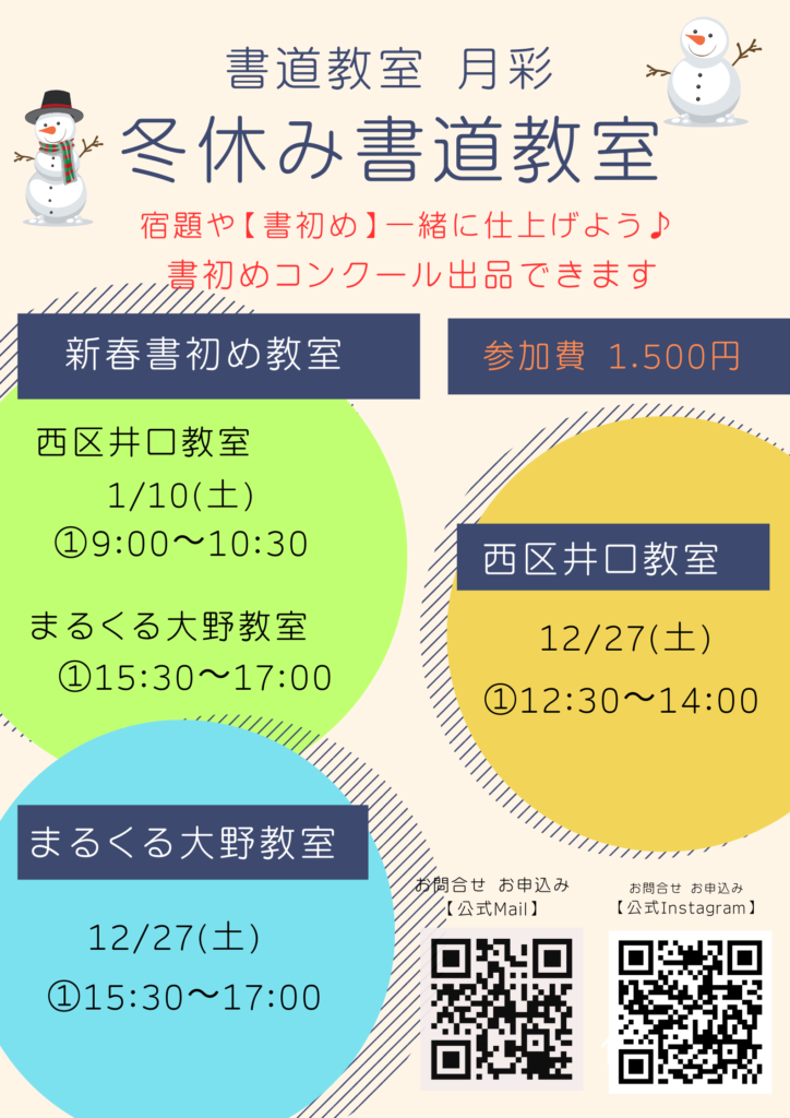 ⛄冬休み書道教室のご案内⛄